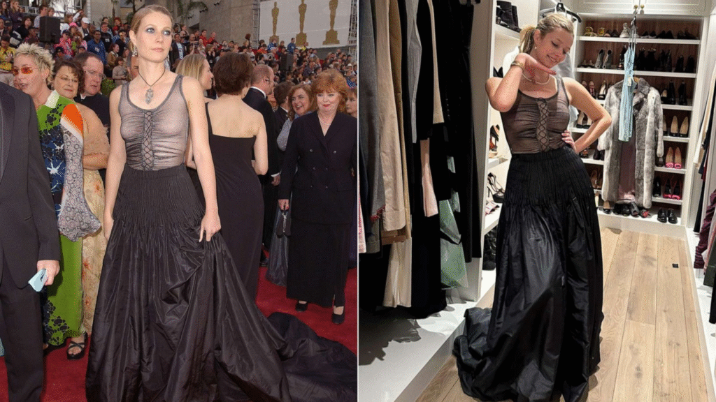 Gwyneth Paltrow’s daughter, Apple, wearing her mom’s dress nearly 30 years later wasn’t just a nostalgic headline. It was a powerful example of how fashion, emotion, and sustainability intersect. The moment honored the past while embracing the present, proving that true style transcends time.